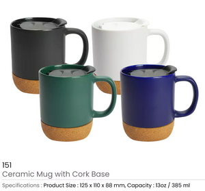 Ceramic Mug with Lid & Cork Base (385 ml)
