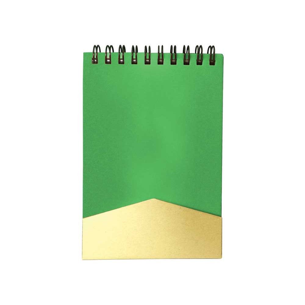 The recycled notepad with a pen and magnetic flap is a unique option for those seeking an eco-friendly notepad. It features a spiral design and a magnetic flap, as well as a pen holder and three different-sized sticky notes in various colors. The bicolor cover is made of recycled cardboard, making it environmentally friendly. The black spiral ring adds to the overall design of the notepad, while the vibrant pen loop is made of cardboard. The included pen has a cardboard barrel with a bright tip and clip, making it a great option for corporate gifts. This personalized notepad is small and portable, making it convenient for travel purposes.